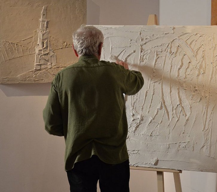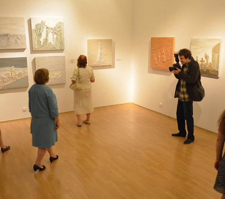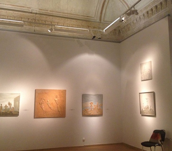 На выставке в Русском музее были показаны работы последних лет: живопись и гипсовые рельефы. Рельефы, или же объемные картины, создаются художником в оригинальной авторской технике. Возможно впервые в истории рельефа, вида искусства, ограниченного техническими особенностями отливки в формы, Кочейшвили удалось перенести живописную импровизацию в твердый материал и зафиксировать в гипсе свободное движение мастихина. Рельефные мизансцены буквально оживают – каждый объем отбрасывает характерную тень с четким краем, а фигуры вступают в диалог, будто актеры на театральных подмостках.