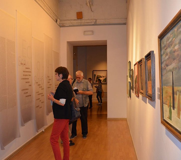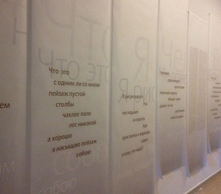 В пространство экспозиции были органично включены стихотворные тексты художника-поэта, а также транслировался документальный фильм об авторе.